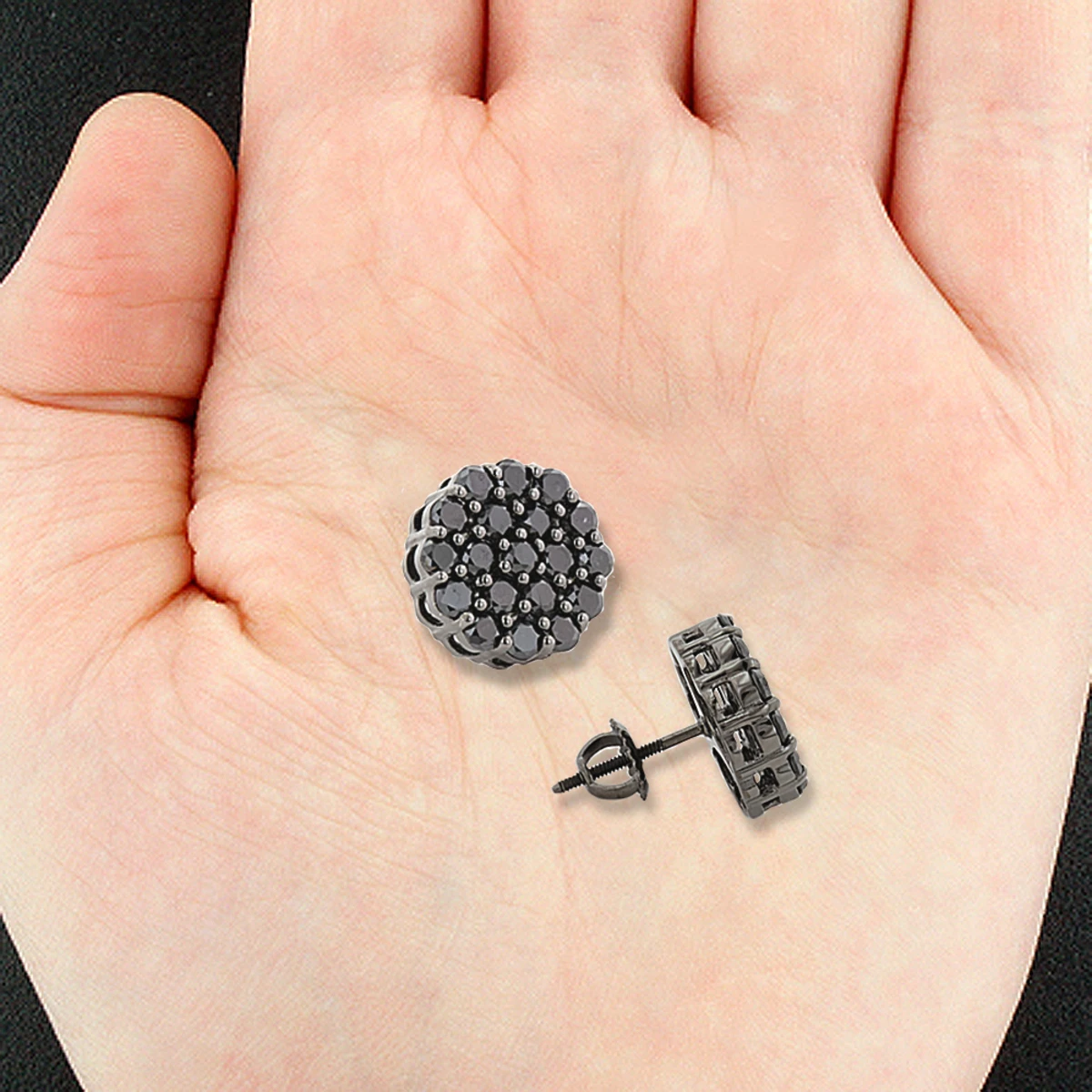 Large Black Diamond Cluster Earrings 3.5 Ct 10K Black Plated Gold Studs