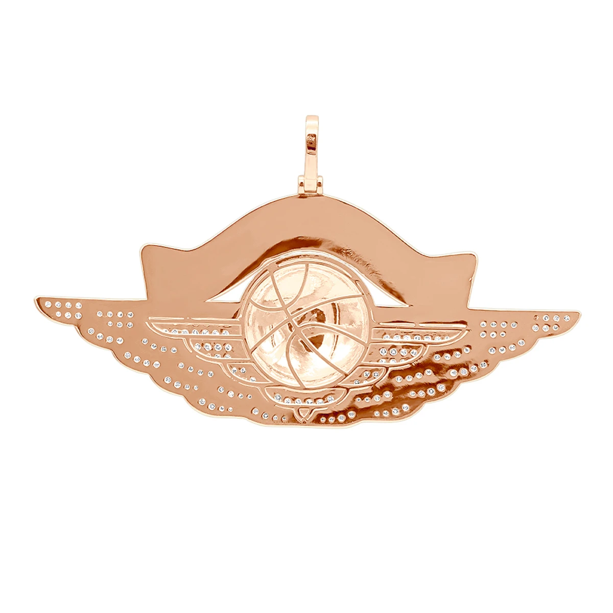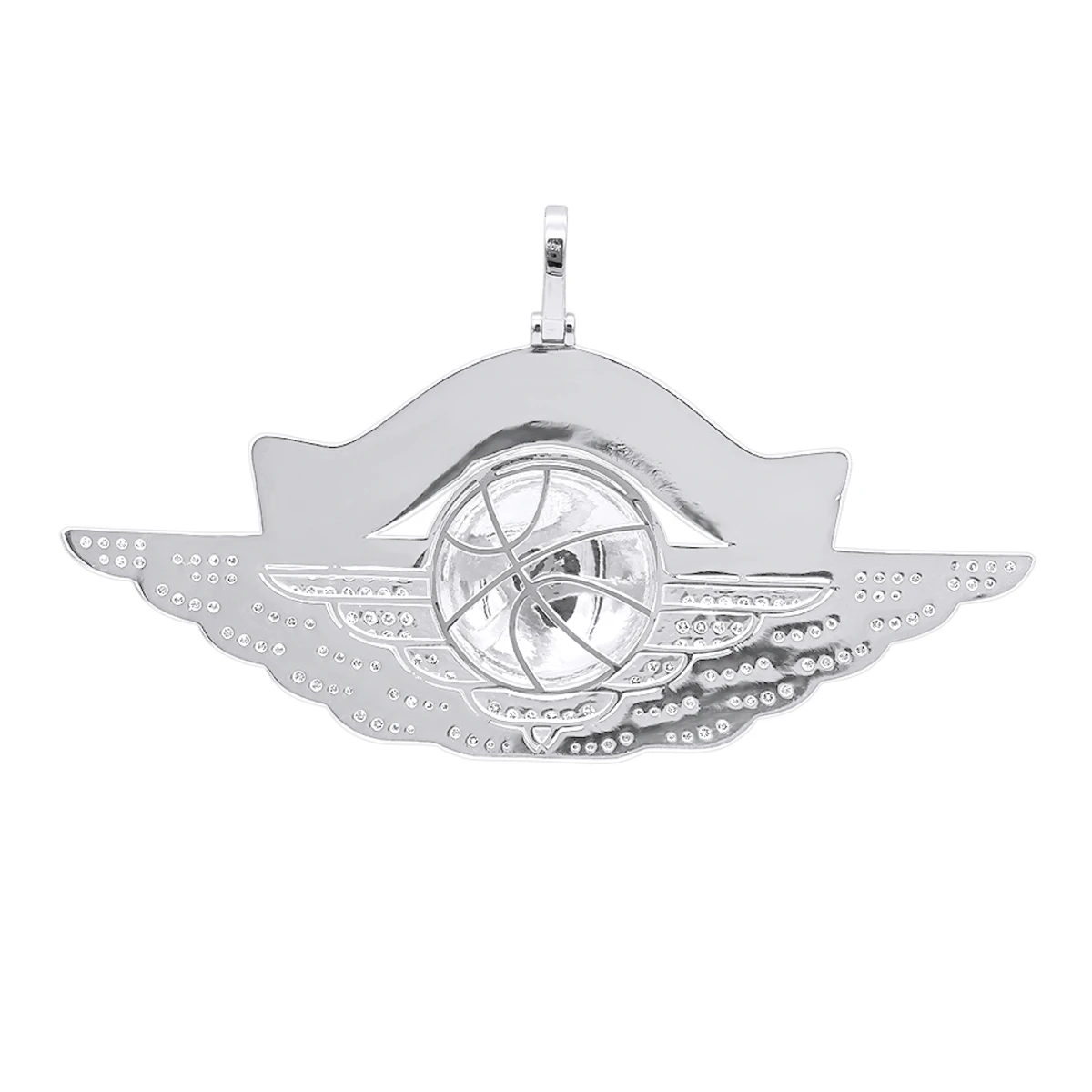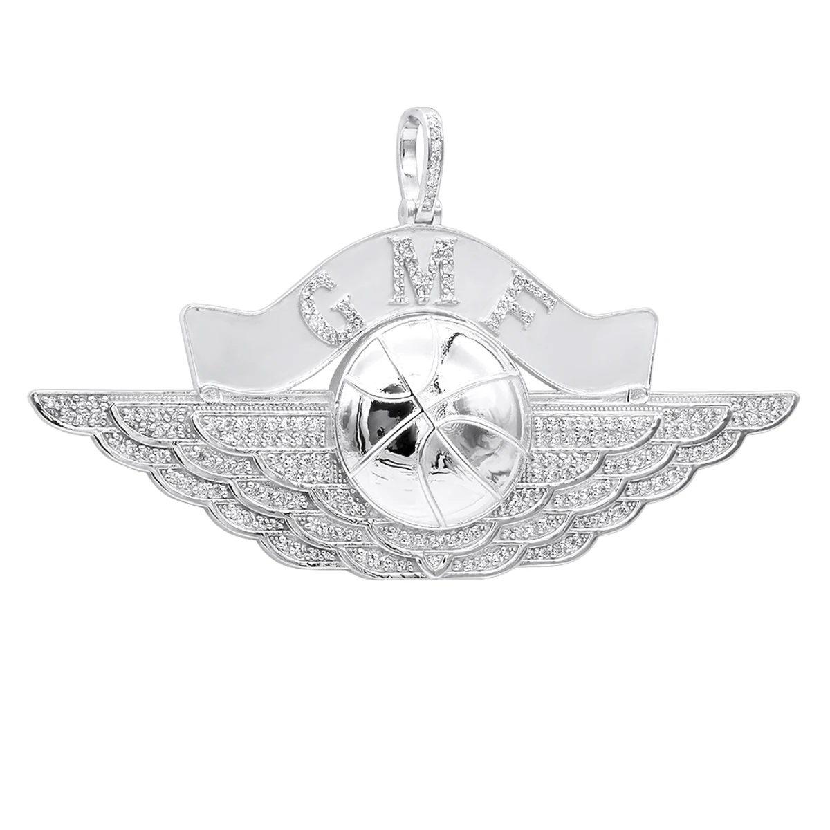 From our custom made pendants collection This awesome Diamond Basketball Pendant for Men in solid 10k Gold with customer’s initials (you can pick your own or completely redesign the pendant) features 3.5 carats of genuine round diamonds and extreme attention to detail. The pendant showcases a unique design of a polished golden ball with multiple wings covered in an array of pave set white diamonds. With diamond lettering above the main composition and diamonds even on the bail, this menss pendant is simply mesmerising. The pendant is quite massive – 2 1/4in. (56mm) long and 4in. (100mm) wide and will require a wide tough chain to match its character. Contact us to customize this pendant or make your very own unique design! You also can personalize this piece or check we’ve already made and create your own design.