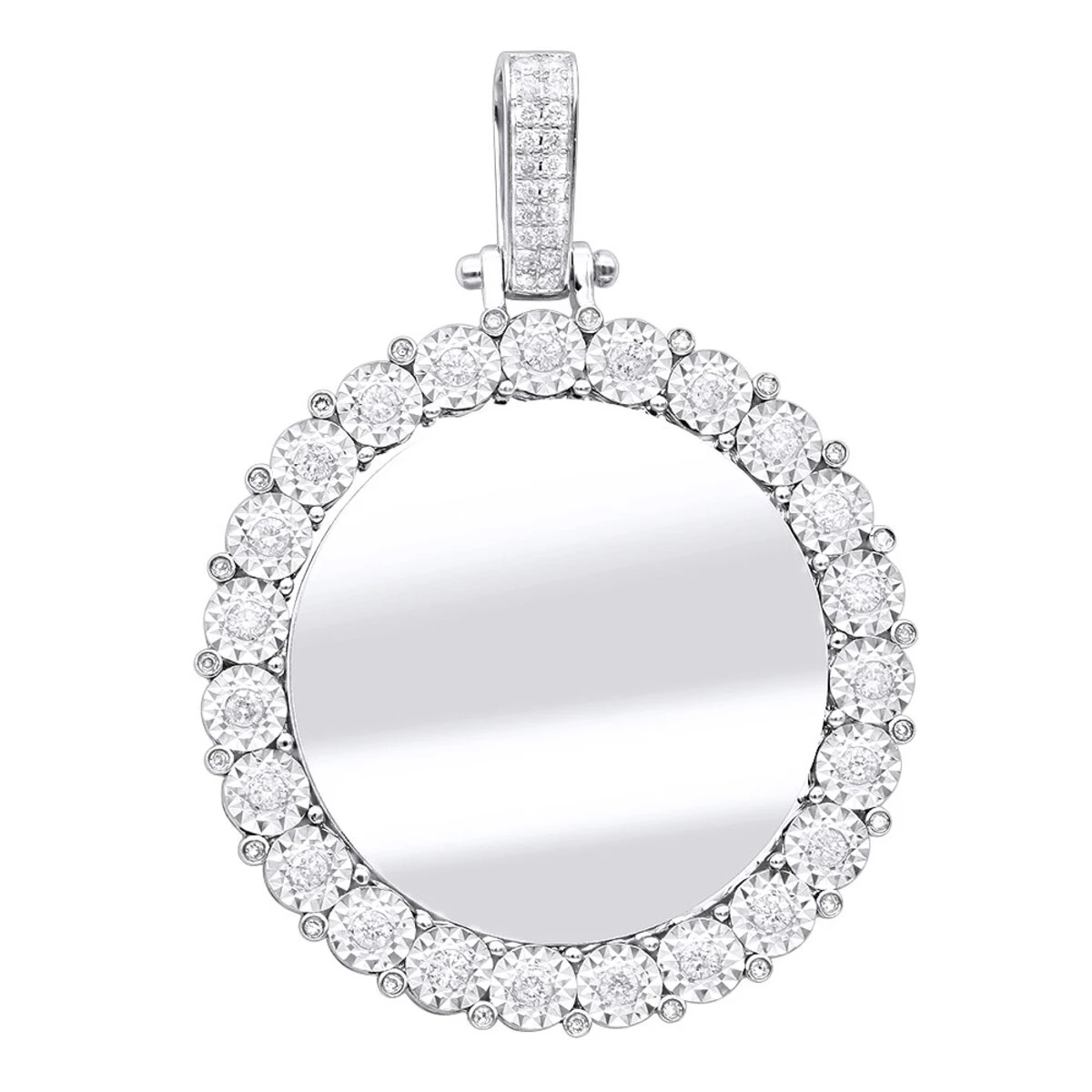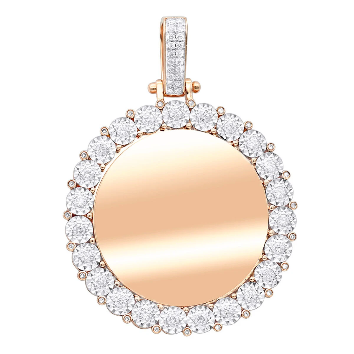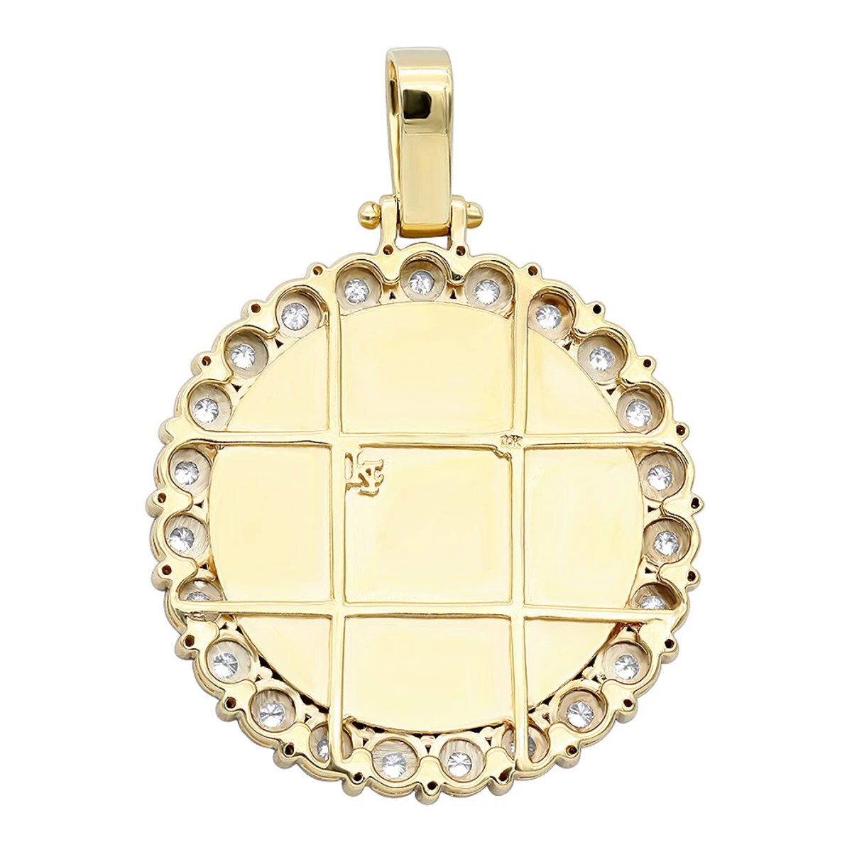 Large Round Customizable Picture Pendant 2 Carat Diamond Medallion 10K Yellow Gold