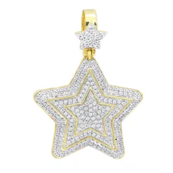 Large Unisex High Fashioned Diamond Star Pendant 14K Yellow Gold 1.8CT