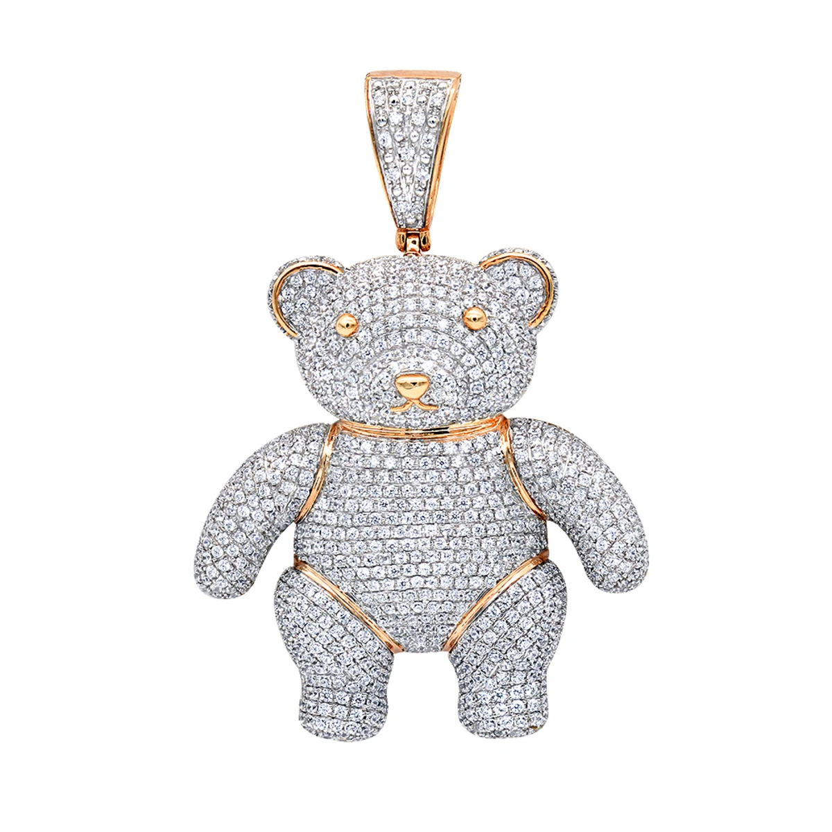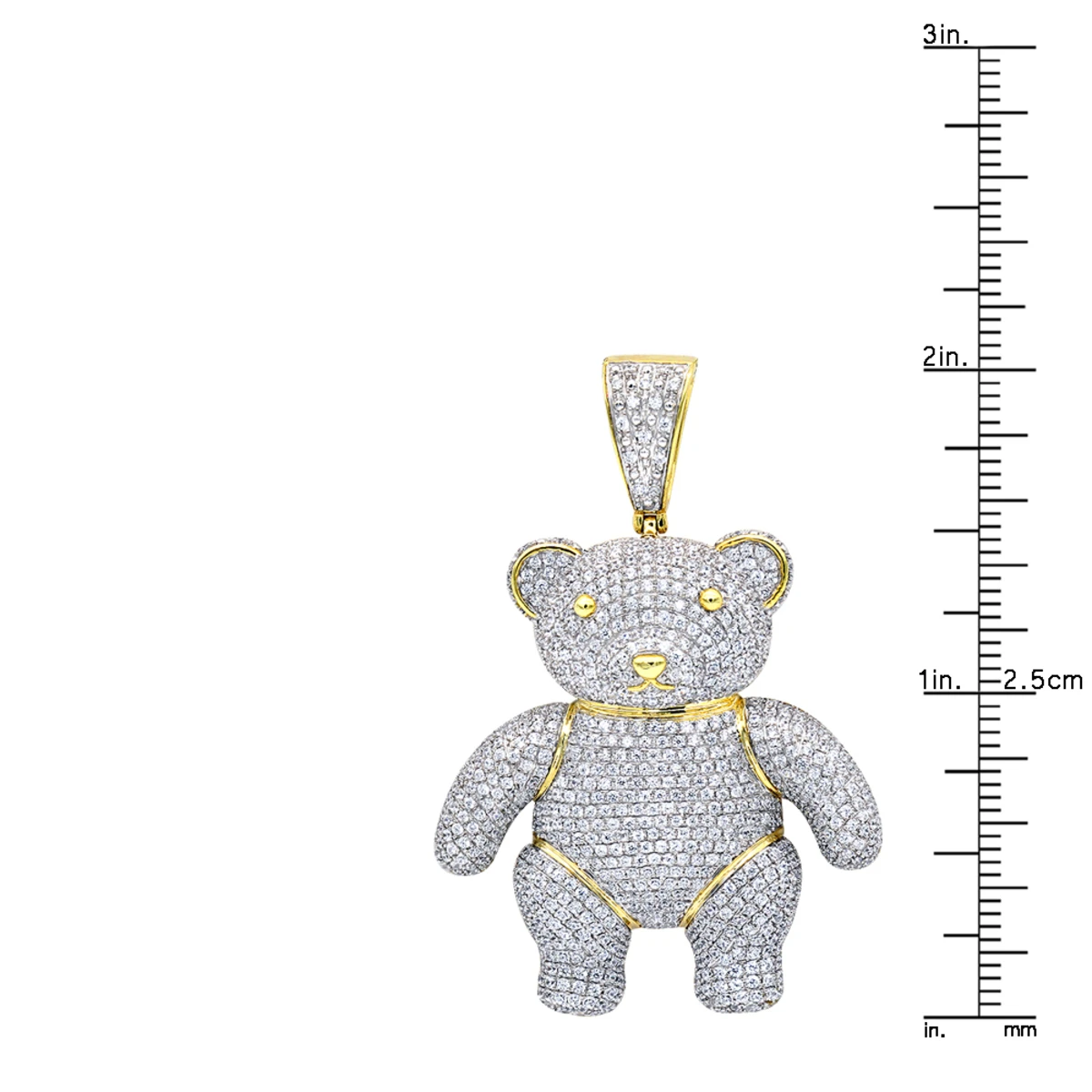 Luxurman Charms 10K Yellow Gold Large Teddy Bear Diamond Pendant Men’s 3.25ct