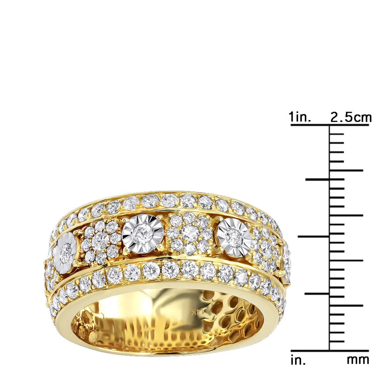 Luxurman Men’s Diamond Rings: This very unique Men’s Diamond Band is made in 14k gold and features 10mm width with the band decorated in 2.25 carats of sparkling diamonds, this very unique versatile ring is available in 14k yellow gold, white gold or rose gold and can be worn as a regular men’s diamond ring, men’s diamond band or an anniversary ring. Makes an amazing present!