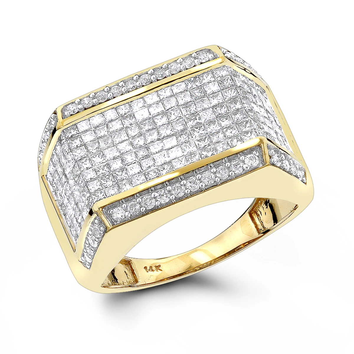 Men’s 14K Yellow Gold Round Princess Diamond Ring 2.25