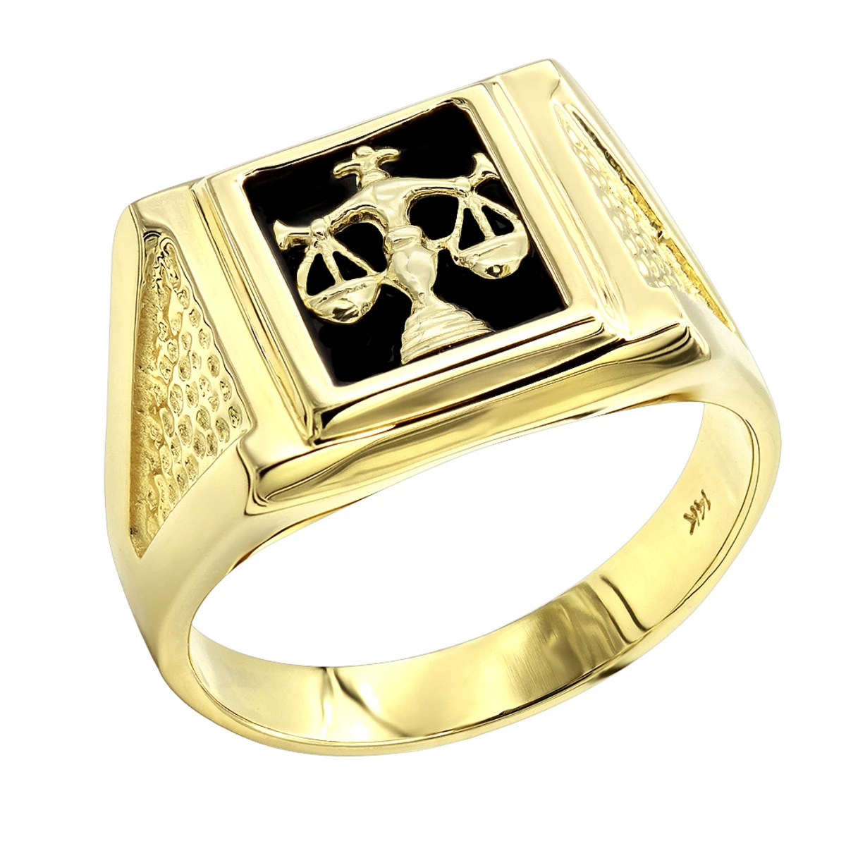 Men’s Black Onyx 14K Yellow Gold Libra Scales Ring