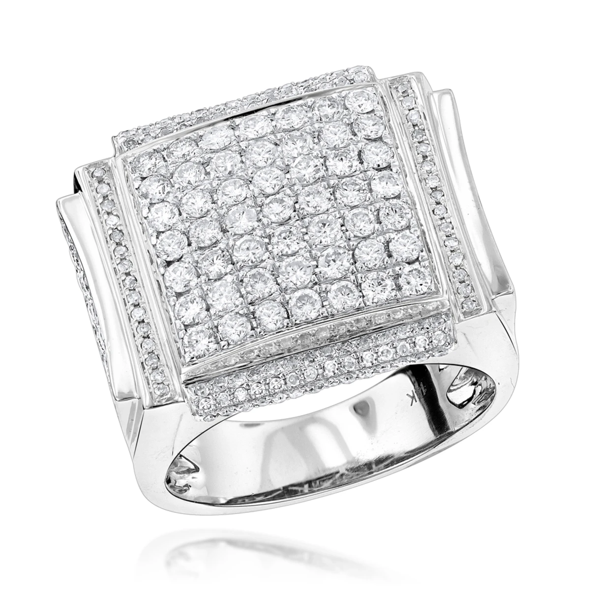 Men’s Designer 14K White Gold Pave Diamond Ring 3 Ct