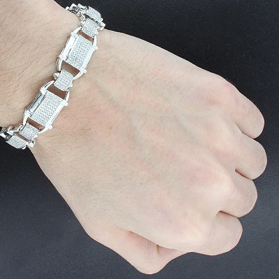 Affordable Men’s Diamond Bracelets: This 10K Gold diamond bracelet weighs approximately 27 grams and showcases 3.29 carats of genuine diamonds. Featuring a unique design and a luxurious rhodium plating for extra shine, this men’s diamond bracelet is available in 10K white, yellow and rose gold.