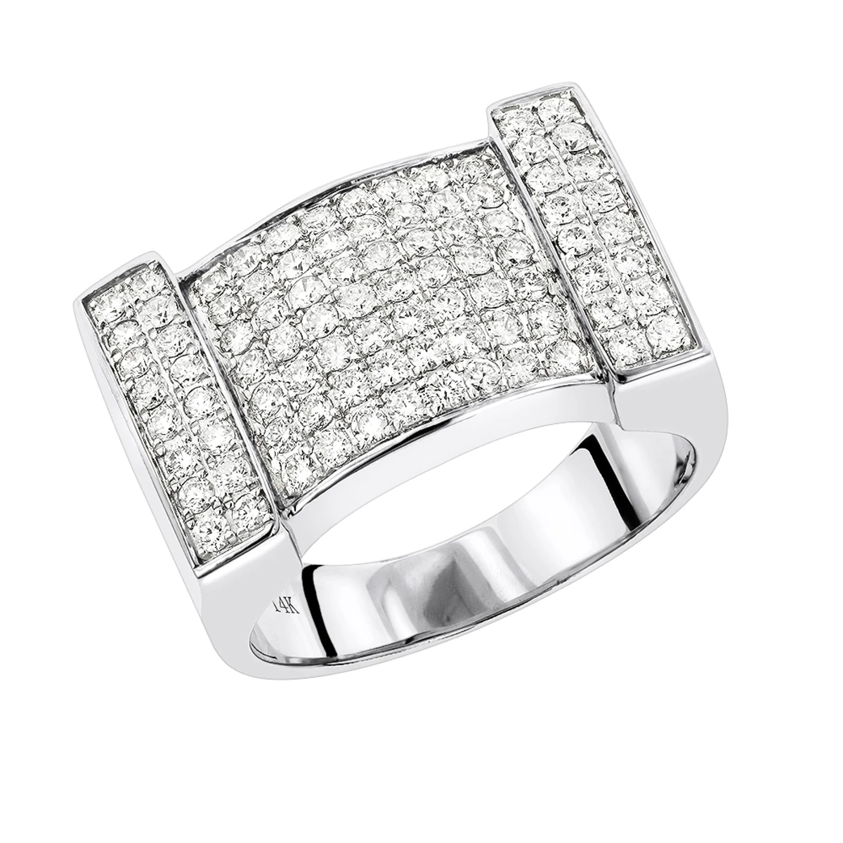 This Men’s Diamond Gold Ring by Luxurman showcases 1 1/2 carats of high quality dazzling round diamonds masterfully pave set in 14K gold base. This men’s diamond ring features gallery on the back for comfort wear and is available in 14K yellow gold, rose gold and white gold. This Luxurman ring will make a great present for your men!