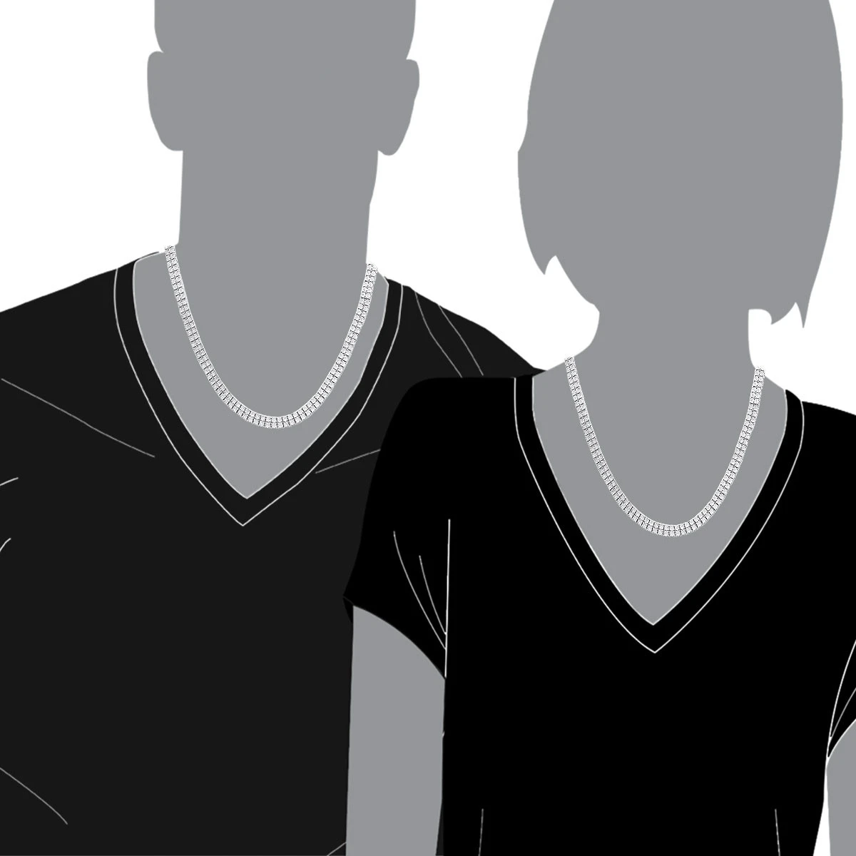 Affordable necklace from our men’s diamond chains collection: this diamond tennis chain necklace is made in real 10k gold and features 2 row design with each link decorated with a small genuine diamond. The chain is available in 10k white gold and yellow gold.