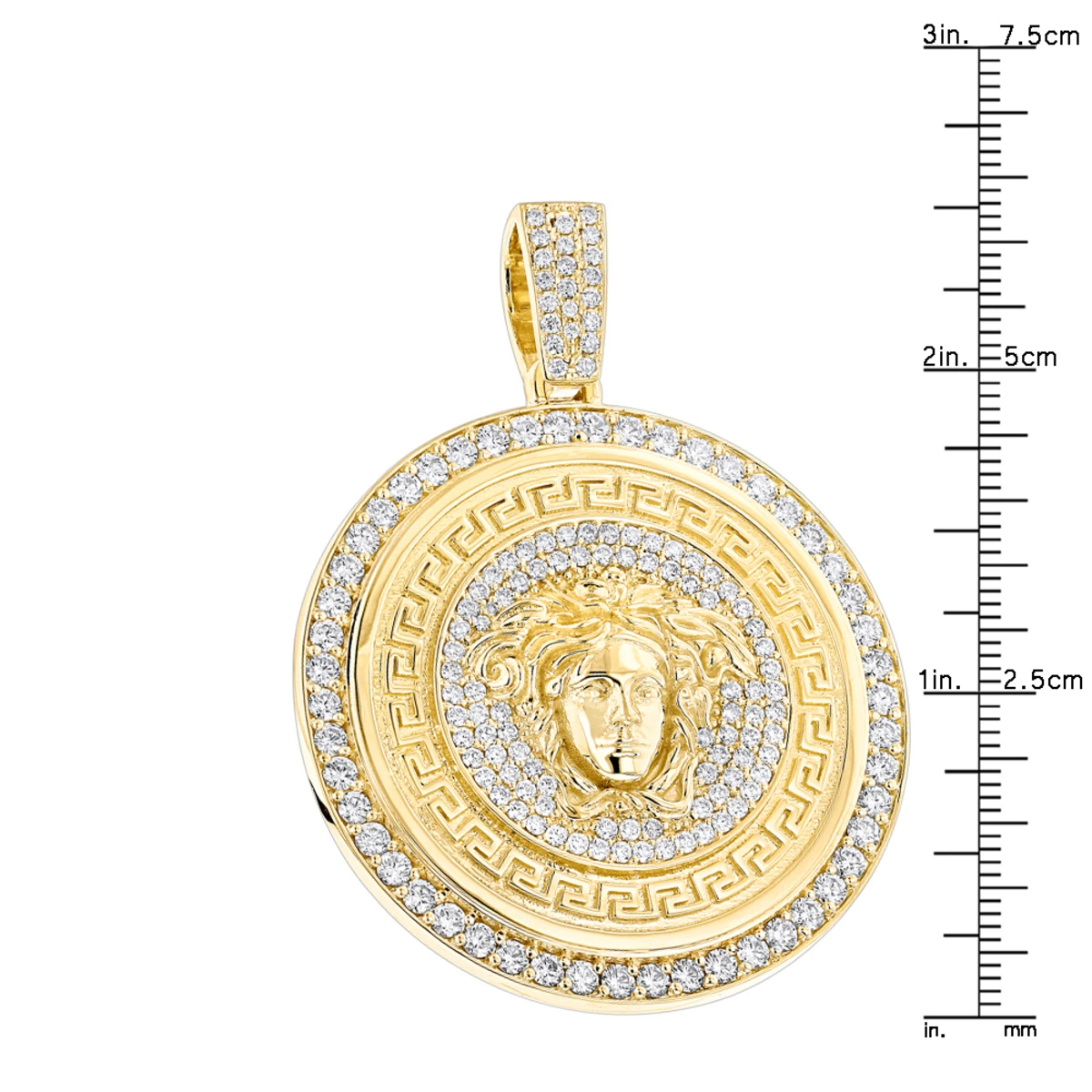 Men’s Diamond Versace Style Medusa Pendant Medallion 18K Yellow Gold 7ct