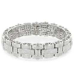 This Men’s Silver Diamond Bracelet weighs 67 grams, showcases 3.25 carats of genuine diamonds and a rhodium plating for an excellent shine. This heavy sterling silver diamond bracelet makes a fabulous gift for any occasion.