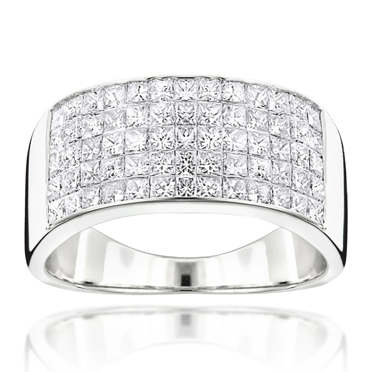 Men’s Wide Wedding Band With Princess Cut Diamonds 2.11ct 14K White Gold