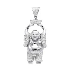 Large 1 Carat 10K Yellow Gold Smiling Diamond Buddha Pendant For Men
