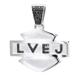 Logo Name Black Diamond Pendant For Men 14K Yellow Gold 0.55ct