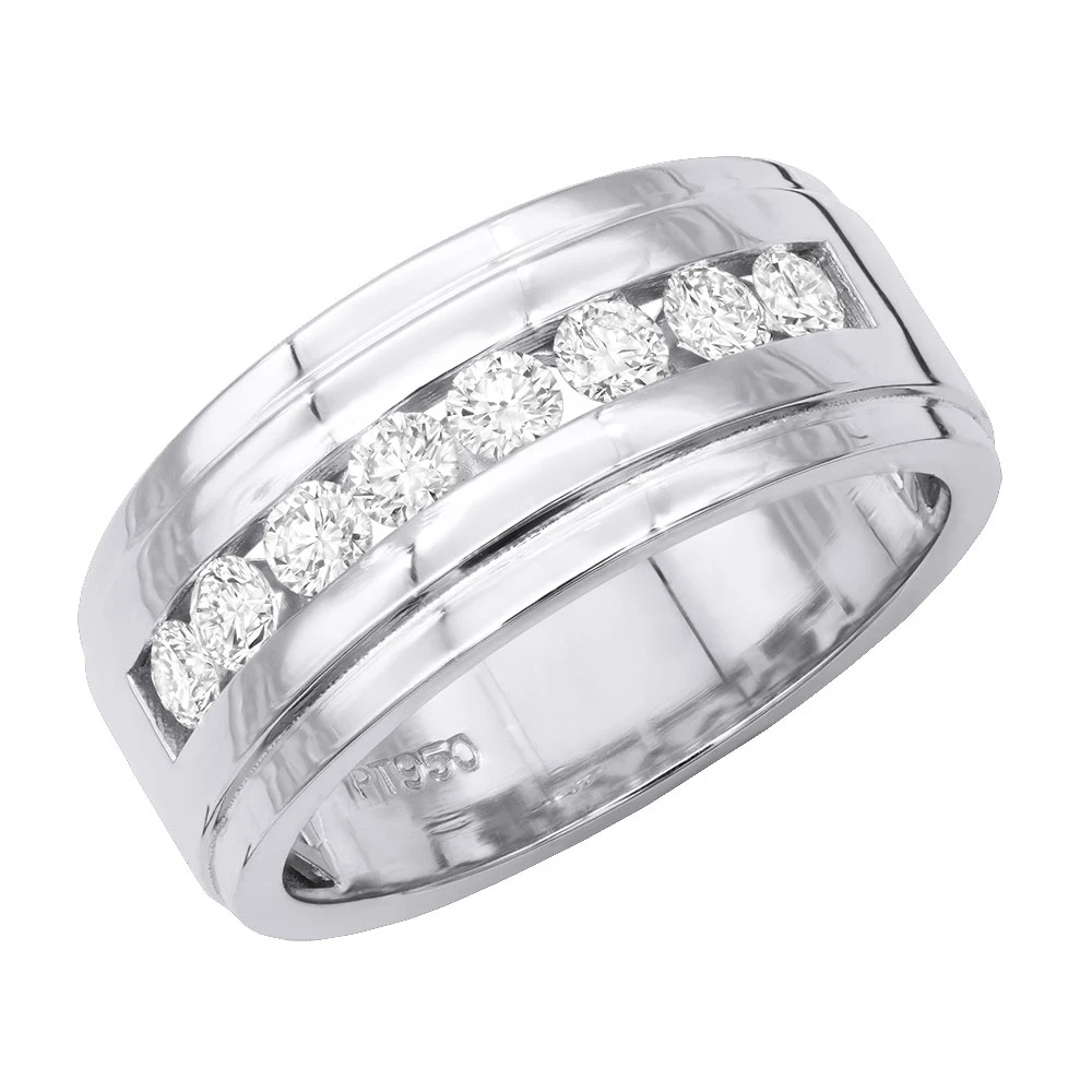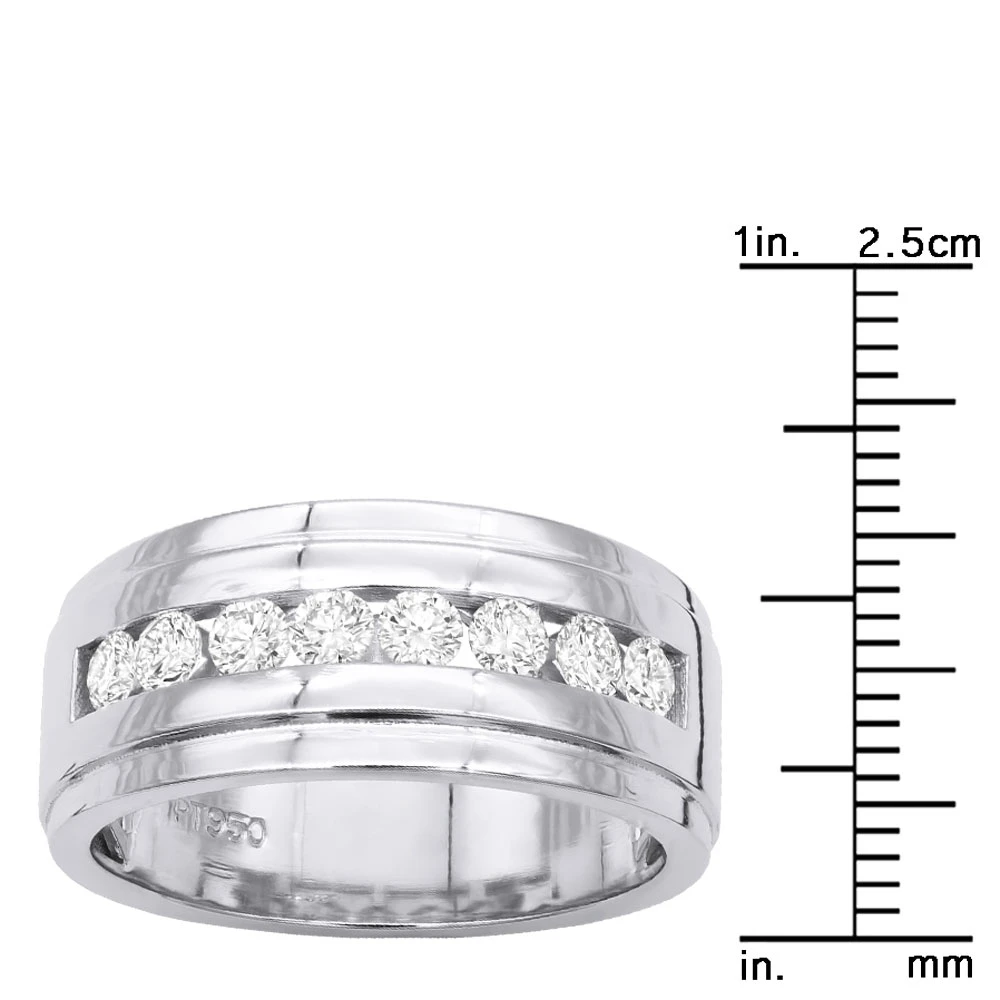 Platinum Men’s Diamond Wedding Band 10mm Wide 1.5 Carats VS Diamonds Ring