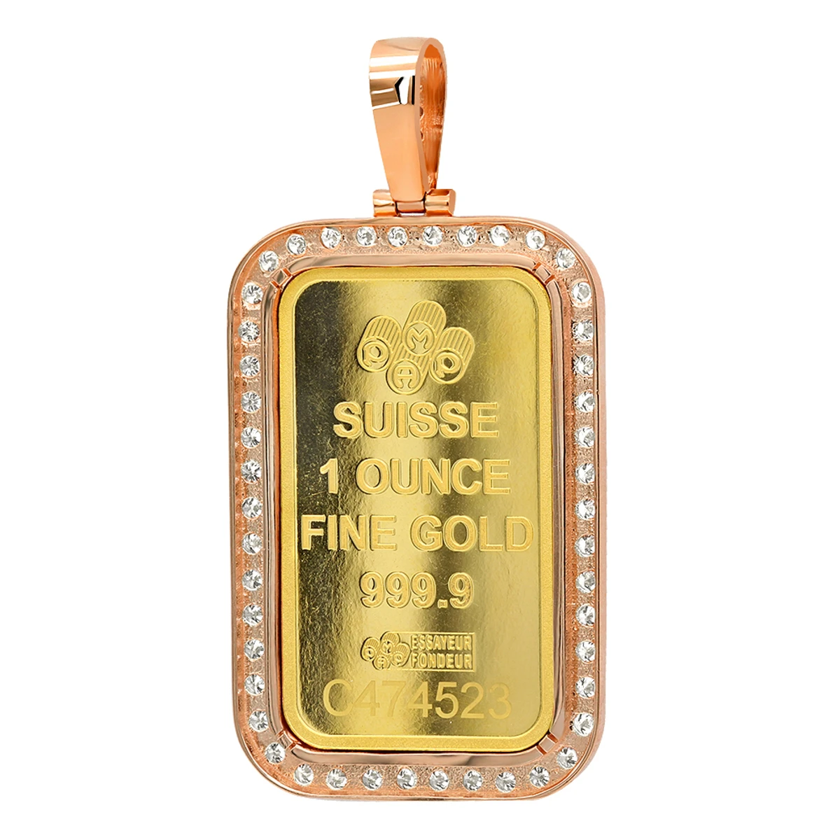 Real 99.9 14K Yellow Gold 1 Ounce Pamp Suisse Bar Lady Fortuna G VS Men’s Diamond Pendant