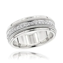 Men’s 14K White Gold 10 Year Anniversary Ring 1 Carat Princess Diamonds Wedding Band