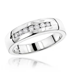 18K White Gold Round Diamond Men’s Wedding Band 0.60ct 4.2mm