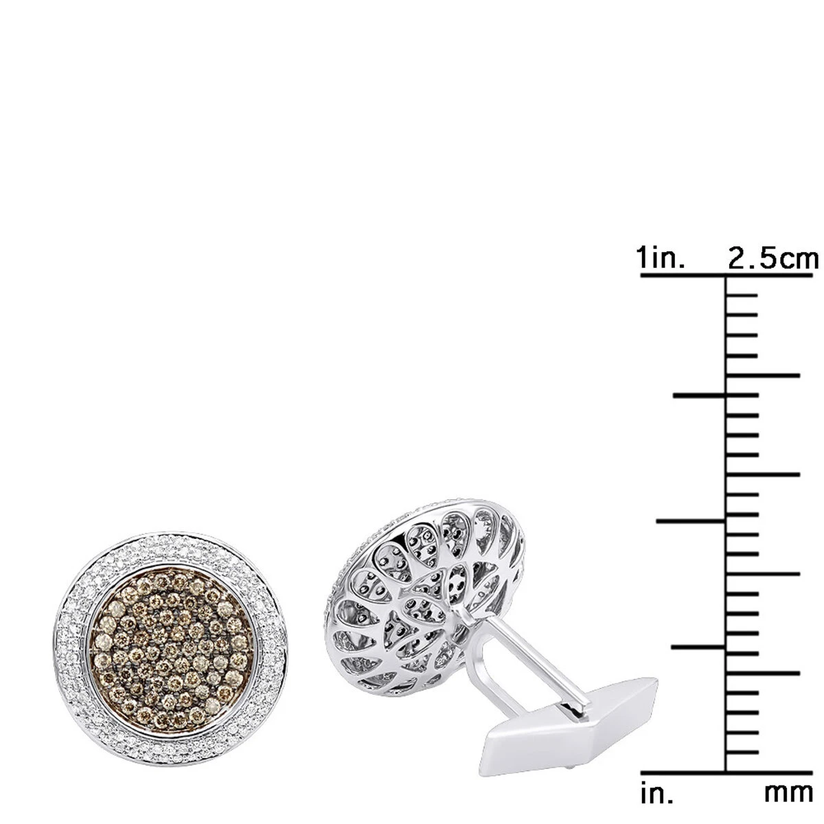 Round Champagne And White Diamond Men’s Cufflinks 14K White Gold