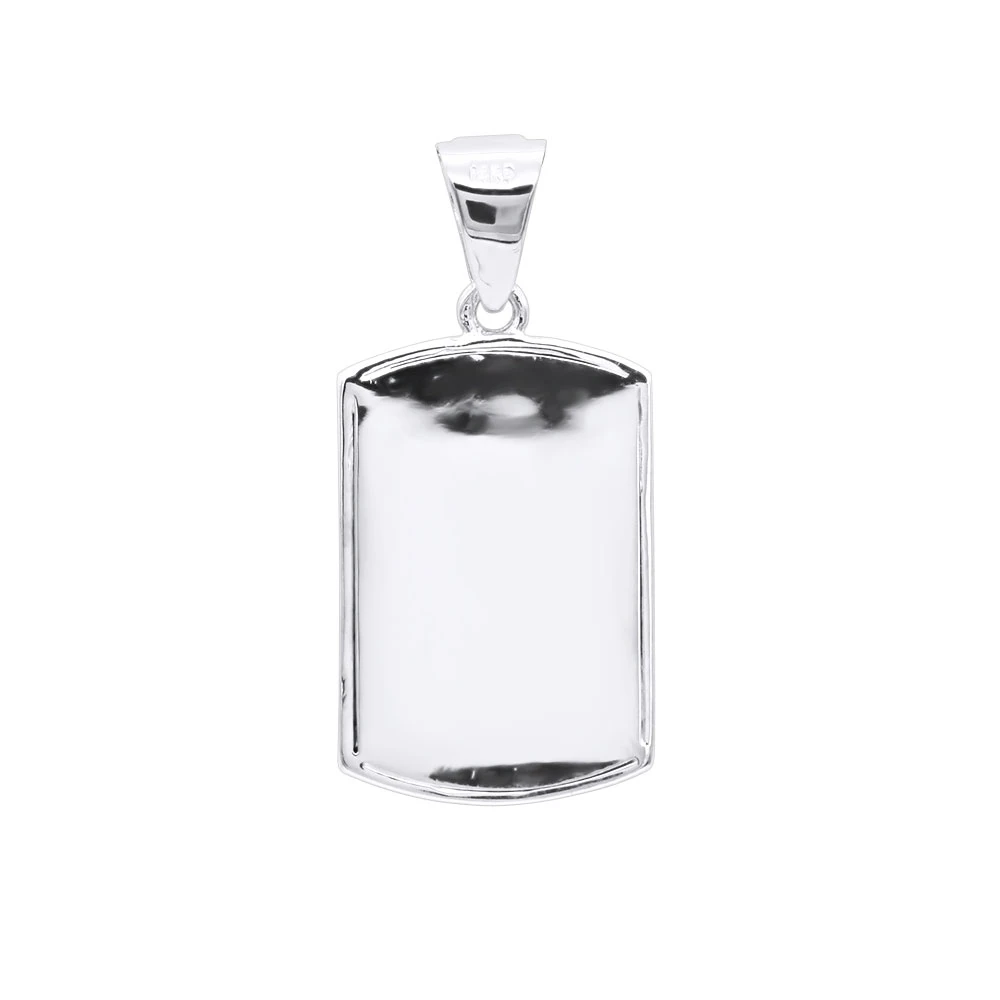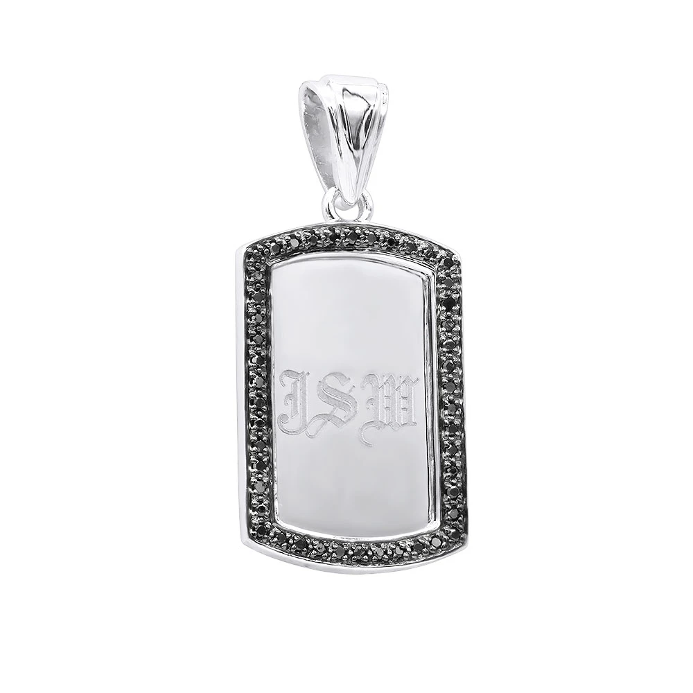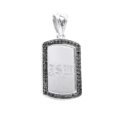 Small Engravable Dog Tag Pendant 14K White Gold W Black Diamonds 0.25ct