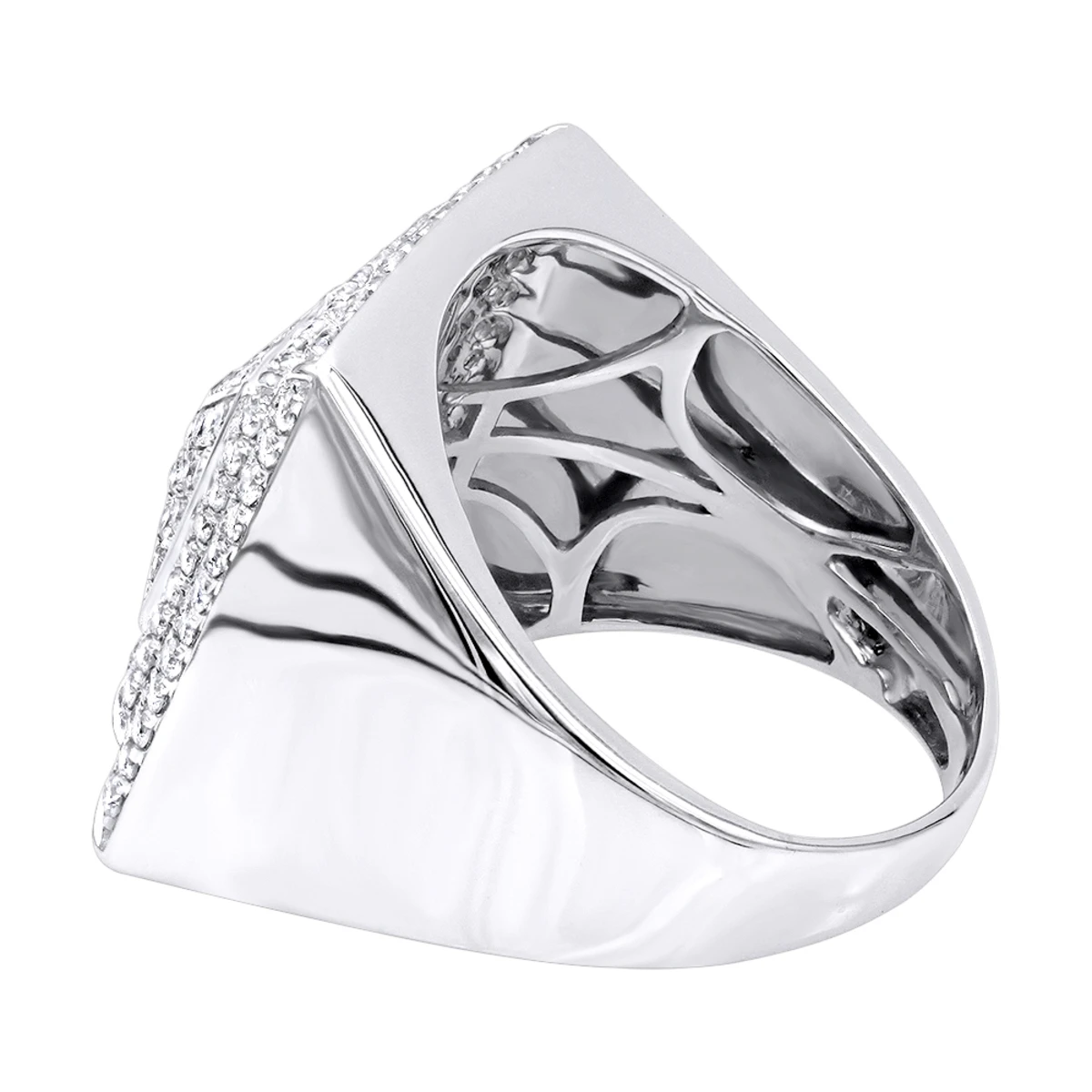 Solid 10K White Gold Pyramid Shaped 2 Carat Diamond Men’s Pinky Ring LUXURMAN