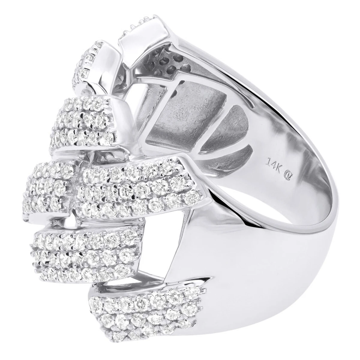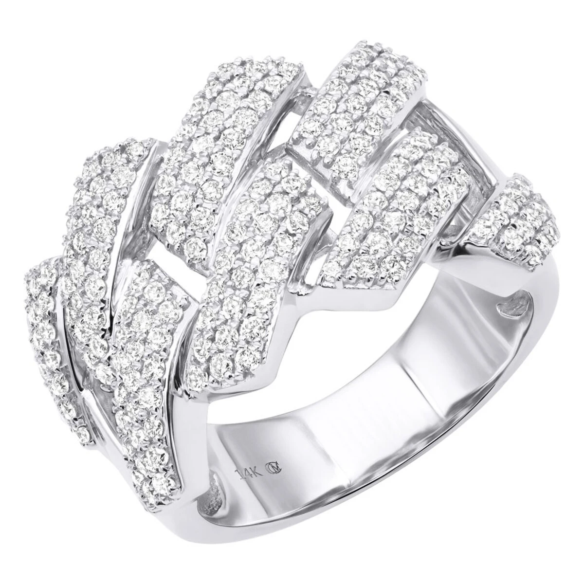 Solid 14K White Gold Cuban Link Ring Iced Out Men’s Diamond Band 2 Carats