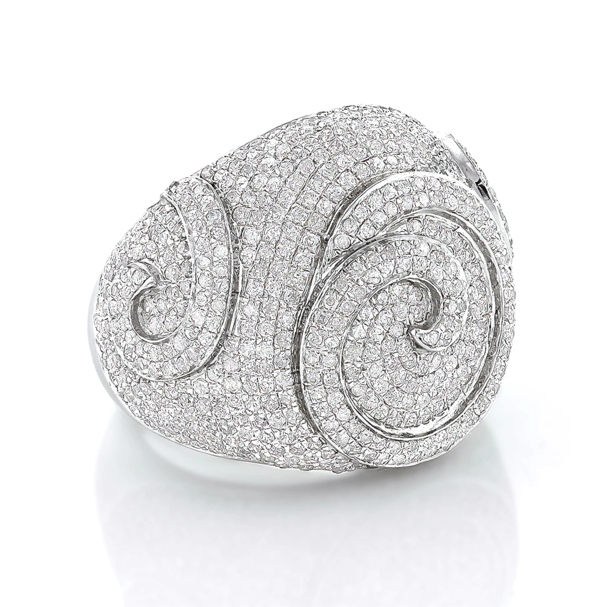 This Sterling Silver Men’s Diamond Ring weighs approximately 7 grams and showcases 3.11 carats of genuine diamonds. This diamond ring features a unique swirl design and a luxurious rhodium plating for extra shine.