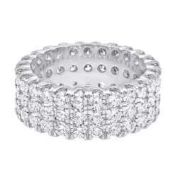 This Sterling Silver Men’s Diamond Wedding Band weighs approximately 5 grams and showcases 0.32 carats of genuine diamonds. Featuring a trendy design and a luxurious rhodium plating for extra shine, this men’s diamond ring is a great alternative to gold jewelry, and makes a great gift for a special occasion.