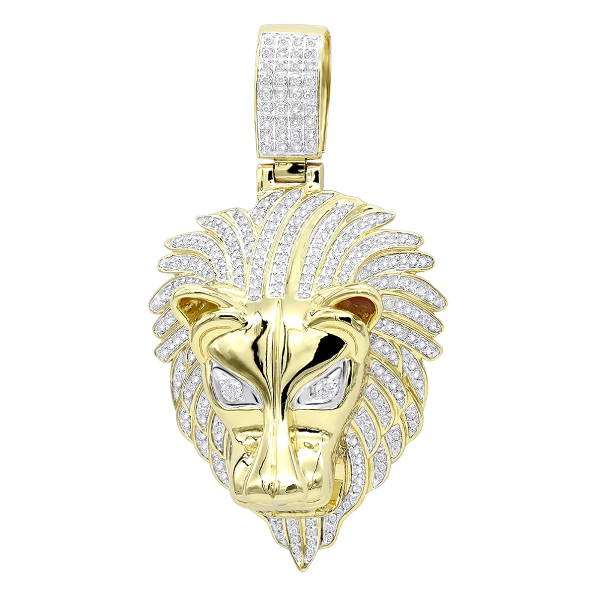 Unique 10K Yellow Gold Lion Head Diamond Pendant For Men 0.9ct By Luxurman