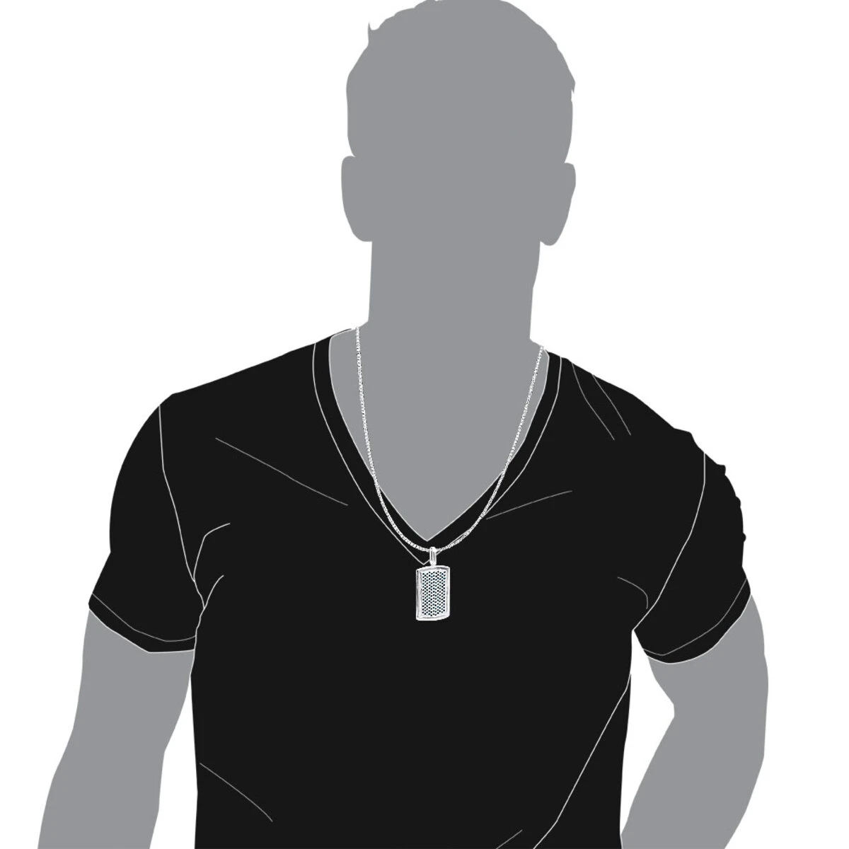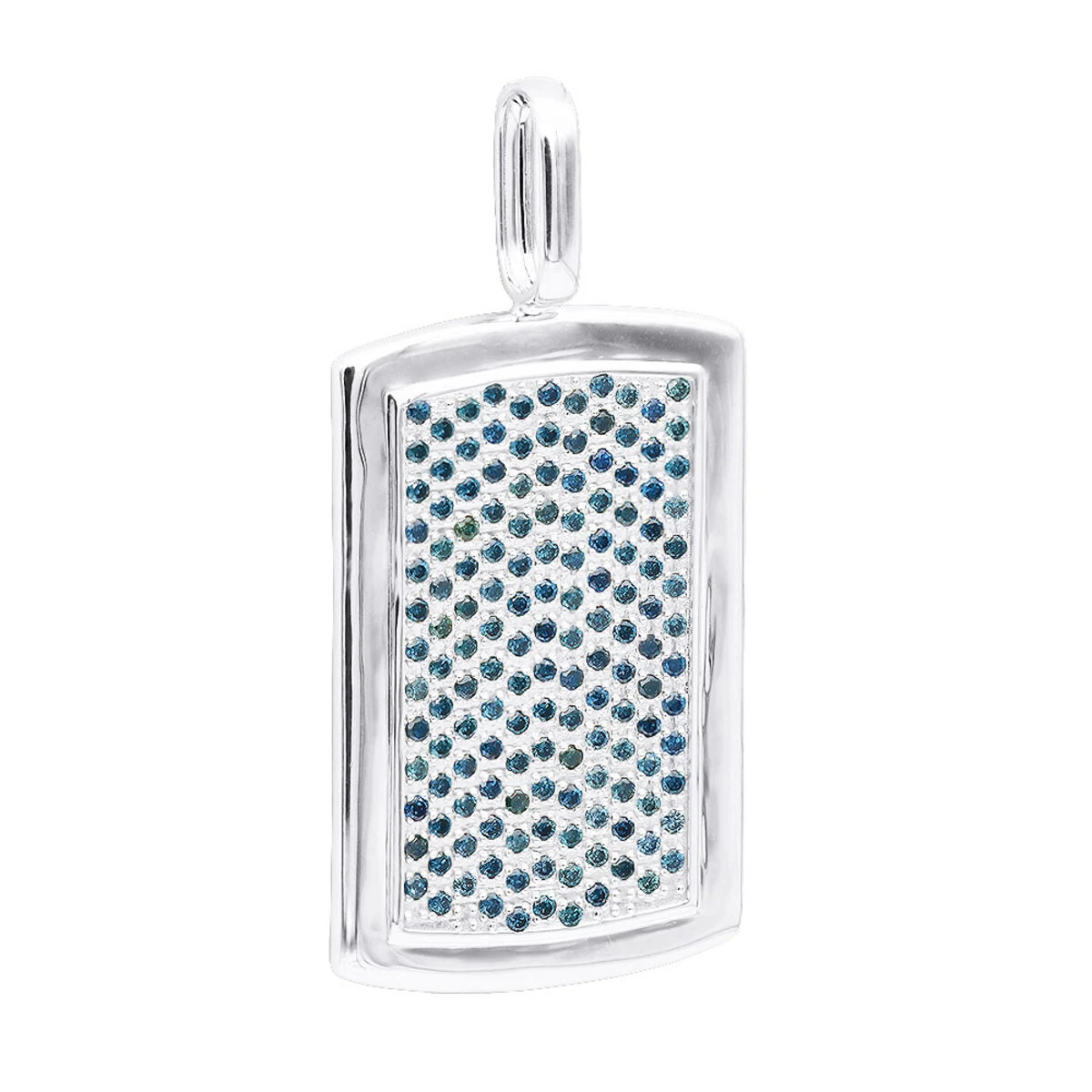 Unique 14K White Gold Blue Diamonds Dog Tag Pendant For Men 3.25ctw