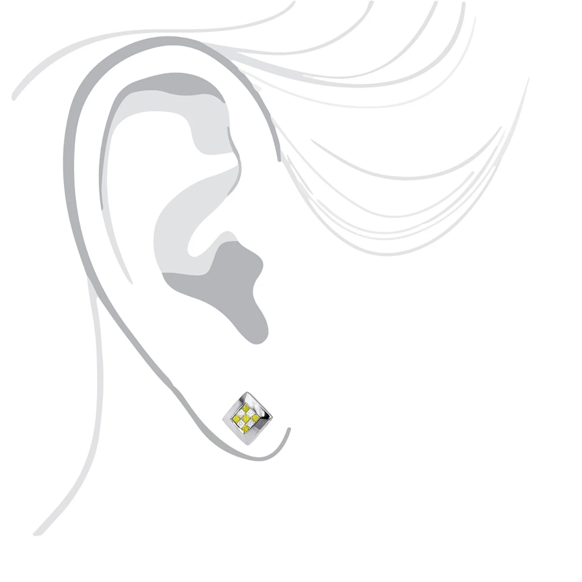These very unique 14K Gold White Yellow Princess Cut Diamond Earrings Studs weigh approximately 2 grams and showcase 0.5 carats of invisibly-set princess cut diamonds. Featuring a checkered pattern and a highly polished gold finish, these versatile white and canary yellow diamond stud earrings are available in 14K white, yellow and rose gold.