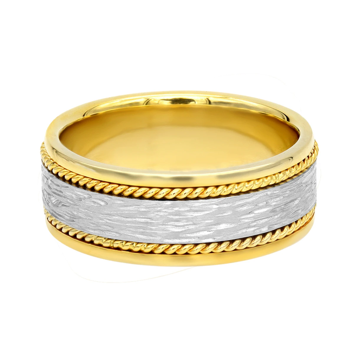 Unique Solid Two Tone Solid 14K Yellow Gold Men’s Braided Wedding Band Comfort Fit Design