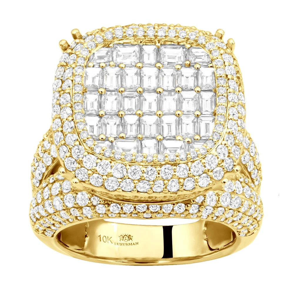 Unique Statement Men’s Diamond Ring 12 Carat 14K Yellow Gold VS Baguette Diamonds