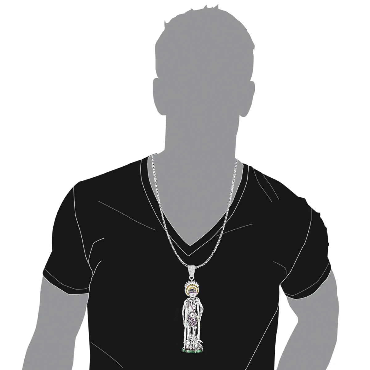 This Unique Sterling Silver Saint Lazarus On Crutches With Dogs Statue Pendant is a truly unique jewelry piece featuring great workmanship detail and can be worn as a pendant or stand as a stand alone statue. This unique jewelry item features amazing details, solid sterling silver design and is decorated with White, Black, Canary and Pink CZs. St. Lazarus is a talisman that means “God is my help”. Standard Roman Catholic-style medals of St. Lazarus are worn as talismans and this pendant will make a regardful gift for someone trully special in your life. You also can personalize this piece or check we’ve already made and create your own design.