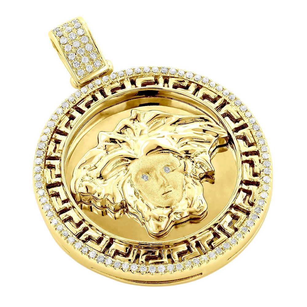 This Versace Style Medusa Head Diamond Pendant Medallion in 10K gold showcases 0.52 carats of sparkling diamonds. Featuring a Versace style design, this oversized medusa head pendant is truly a unique design! Chain must be purchased separately. Manufacturing time is 3-5 business days. You also can personalize this piece or check we’ve already made and create your own design.
